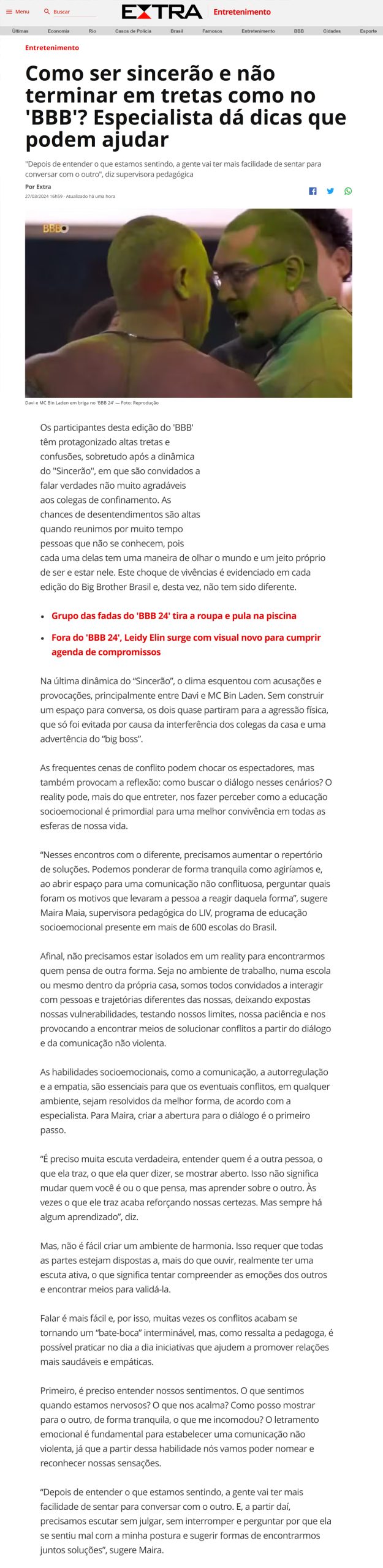 Todas as publicações Extra Online Como ser sincerão e não terminar em tretas como no ‘BBB’? Visite a página original anterior próximo post
